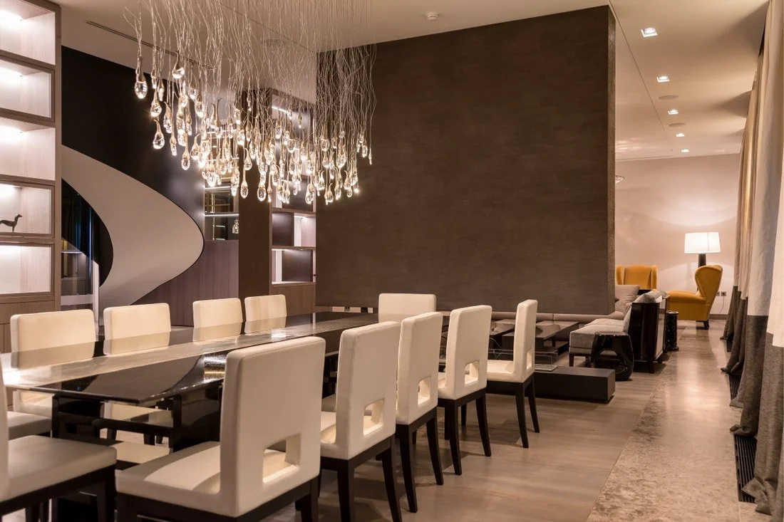 "Wow-effect" chandelier - designer Kelly Hoppen (https://kellyhoppeninteriors.com/)